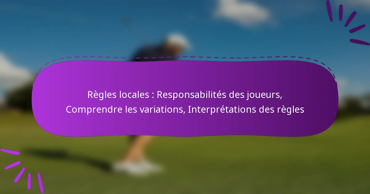 Les principales responsabilités des joueurs dans les règles locales englobent la compréhension des obligations de jeu, le maintien de l’esprit sportif et le respect des protocoles de communication. Les joueurs doivent être conscients des adaptations spécifiques aux règles qui peuvent varier selon les lieux et des conséquences de leur non-respect.