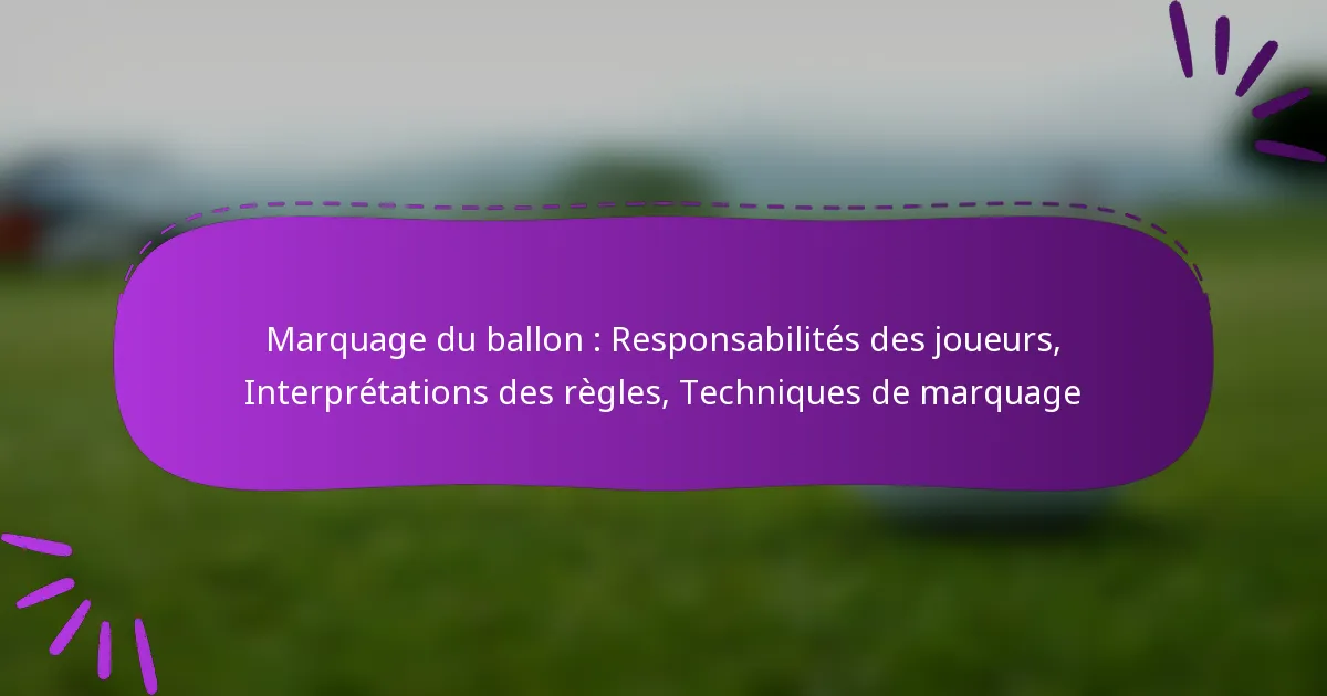 Les responsabilités des joueurs lors du marquage du ballon incluent le maintien d’un positionnement approprié, la prise de décisions rapides et la communication efficace avec les coéquipiers. Chaque joueur doit comprendre son rôle dans le marquage pour empêcher l’équipe adverse de prendre l’avantage et pour soutenir la stratégie de sa propre équipe.