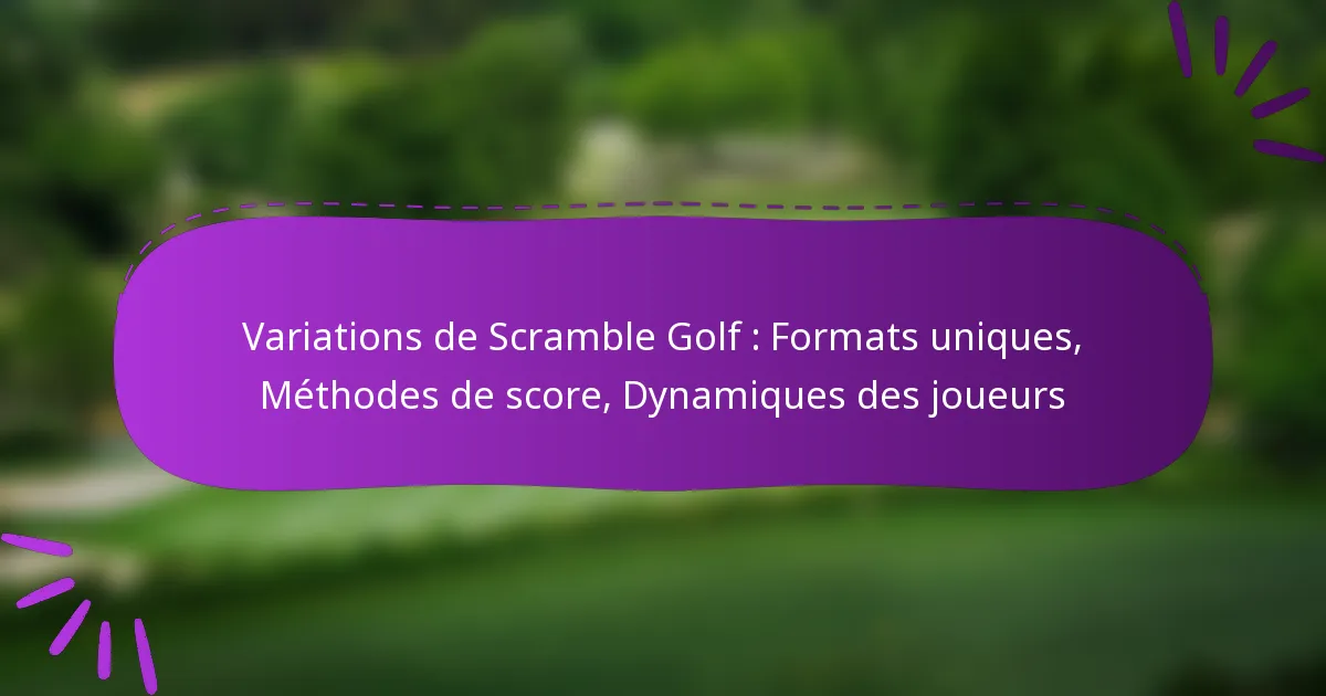Les méthodes de score dans le golf scramble varient considérablement en fonction du format utilisé, impactant la dynamique de l’équipe et la stratégie globale. Chaque variation offre des règles et des systèmes de score uniques qui peuvent améliorer l’expérience compétitive tout en s’adaptant à différents niveaux de compétence.