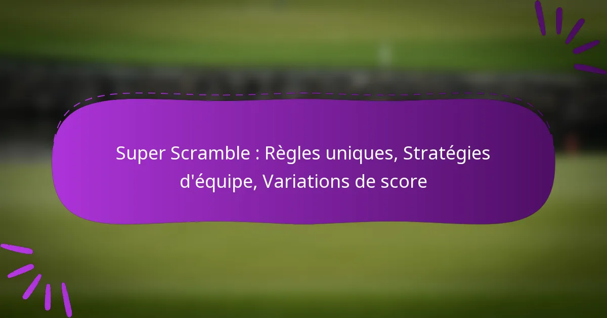 Super Scramble introduit des règles distinctives qui améliorent le travail d’équipe et le jeu stratégique, le distinguant des jeux de scramble traditionnels. Les joueurs doivent s’adapter à des mécaniques uniques et à des variations de score diverses, rendant essentiel la compréhension de ces éléments pour une participation et une performance efficaces. En définissant clairement les rôles et en établissant une communication, les équipes peuvent développer des stratégies sur mesure qui maximisent leur succès dans la compétition.